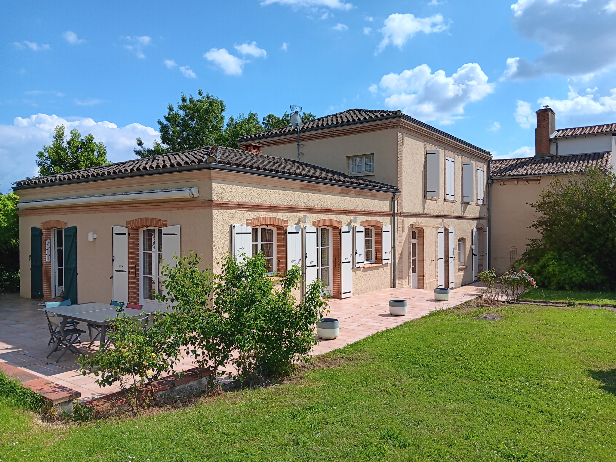 Au cœur du village prisé de GRATENTOUR (2,5 km de Castelginest et 15 km au nord de Toulouse) dans domaine privé sans copropriété, MAISON DE MAÎTRE fin 19e entièrement RÉNOVÉE développant 225 m2 en 7 pièces principales avec dépendance ( maison T3 de plain pied entièrement réhabilitée en 2024/2025), Piscine et garage double sur magnifique PARC d' environ 3000 m2 aux arbres centenaires. Venez goûter à l'esprit de ces lieux ... La bâtisse principale est composée d'une grande entrée distribuant à gauche un séjour où salle à manger (26M2) avec cheminée, passage vers une grande cuisine dinatoire aménagée de 21 m2 , Une chambre de 15 m2 ....Le tout donnant sur de vastes terrasses. A droite de l'entrée, nous retrouvons un grand salon double de 36 m2 avec bibliothèque sur mesure, un bureau, une buanderie/pièce chaudière et un WC. A l'étage le palier dessert 3 chambres (10/18/18M2) dont l'une avec salle de bain privative, un dressing familial, une grande SDE , un wc. Une cave, au sous- sol de la cuisine, d'environ 16M2 accessible par un escalier, complète le tout. Chaudière gaz. Tomettes et parquet massif au sol. La dépendance est une maison T3 d'environ 80M2 de plain-pied entièrement réhabilitée en 2024/2025, avec salon et cuisine (non-existante), 2 chambres, une salle d'eau et un garage. Elle peut faire l'objet d'une location saisonnière ou être occupée par la famille ou pour une activité professionnelle. La piscine 7 X 4 bénéficie d'une pompe à chaleur, margelle et plage récentes. Face à l'entrée, le garage au bout de l'allée permet d'accueillir 2 voitures et scooters. Le magnifique parc avec son bassin ancien confère à ce lieu un charme indéniable.